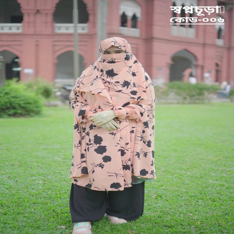 - *লম্বা: ৬২ ইঞ্চি মাথা থেকে (৪৮ ইঞ্চি কাঁধ থেকে)। রাউন্ড ঘের: ১৫০ ইঞ্চি * সাথে ২ টা জিপার পকেট (মোবাইল & প্রয়োজনীয় কিছু রাখার জন্য) * সাথে পাচ্ছেন নিকাব। * ফ্রি সাইজ।