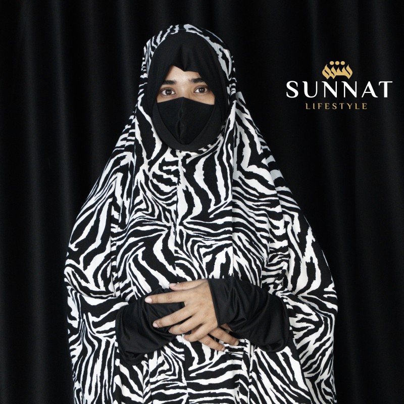 Outfits Umrah Salat Hijab-04(White Black)