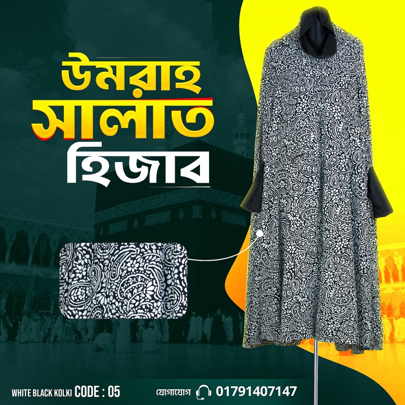 Outfits Umrah Salat Hijab-05(White Black Kolki)